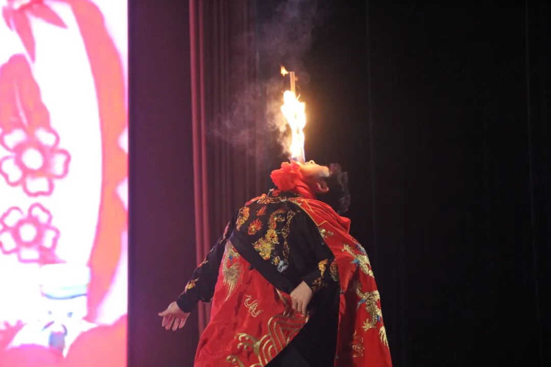 红黑脸谱指尖翻飞如蝶,烈焰腾空似龙舌舞动。音乐系选手的变脸喷火表演凭硬核实力荣获二等奖。赛前,我系闫通深耕曲艺精髓,从脸谱纹样的传统寓意到喷火力度的精准把控,从转身变脸的流畅衔接至眼神与曲风的默契呼应,每一处细节都历经数百次打磨。舞台上这份从容与惊艳,正是在传统艺术与舞台实践中不断淬炼的亮眼成果。